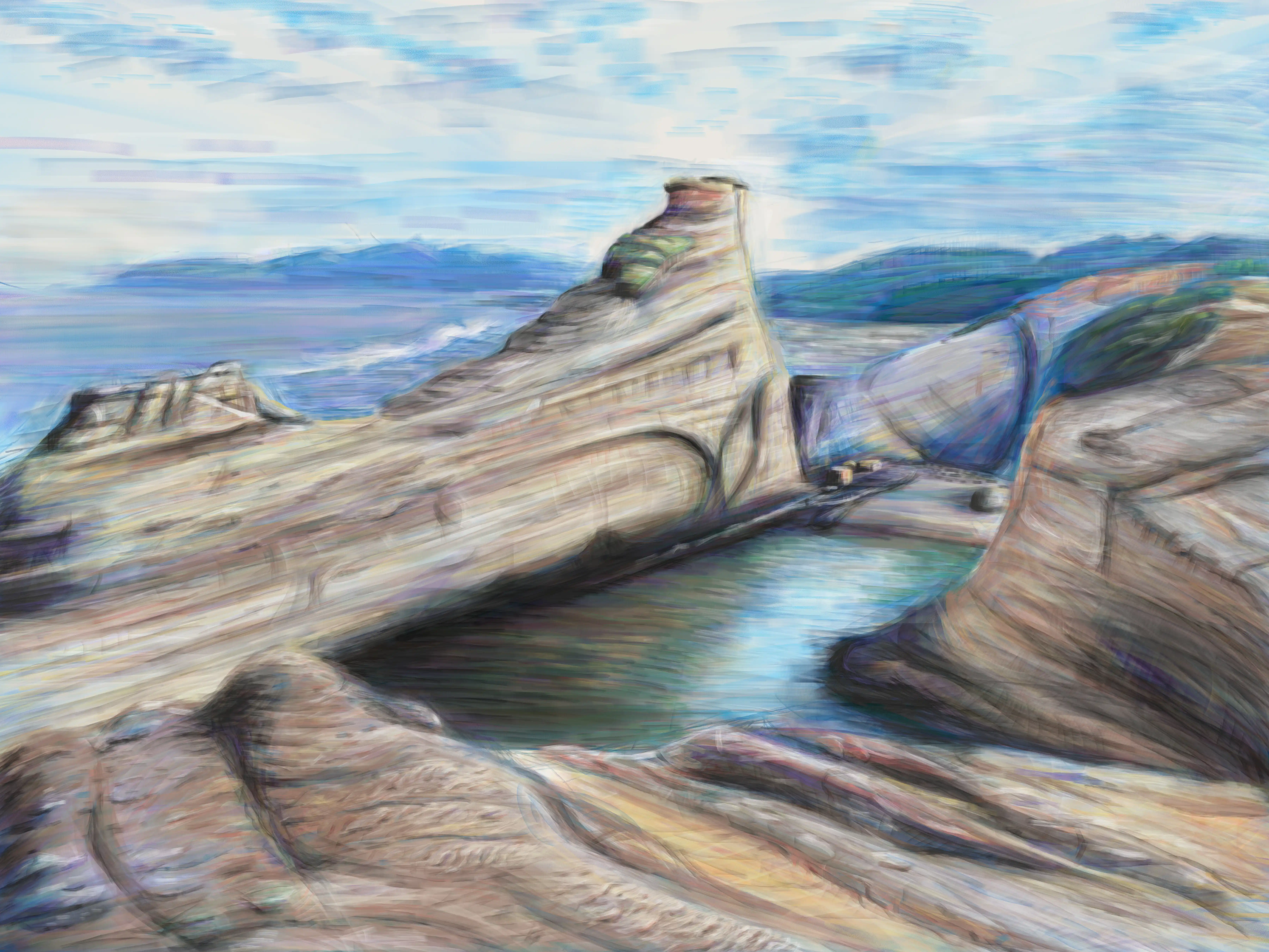 "Cape Kiwanda, OR," Fall 2025, Digital, 18" x 24", Intermediate Drawing